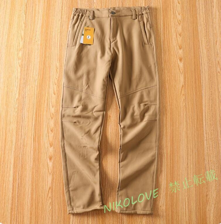 > ☆新品 2XL カーキ ウール混 ストレートパンツ 撥水 秋冬 防寒 厚手 防風 ノーアイロン ウエストゴム ストレッチ メンズ ビジネス