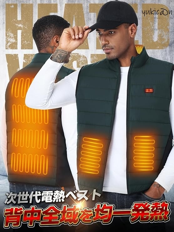 - 電熱ベスト ヒーターベスト M グリーン 30000mAh バッテリーセット 超大発熱面積 速暖 PSE認証 防寒対策 丸洗いOK 節電 省エネ