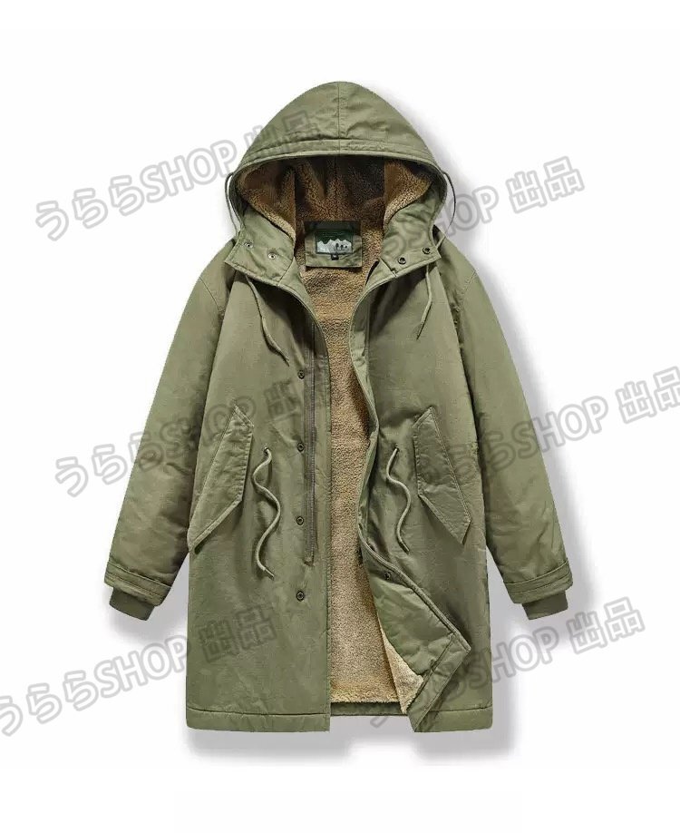 - 秋冬 メンズ ミリタリー風 中長丈 コットンパーカーコート アメカジ フード付きロングジャケット SIZE:XL xfz08.3