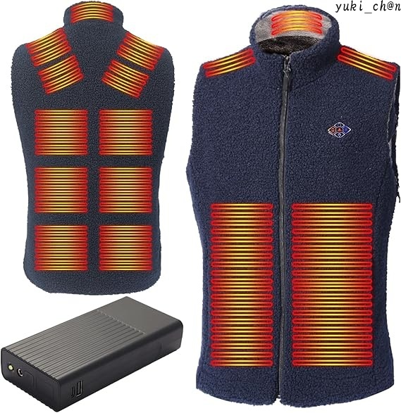 - 電熱ベスト 加熱ベスト ボアフリース ネイビー Lサイズ 40000mAh バッテリー付き 両面起毛 防寒 男女兼用 洗濯可 男女兼用 節電 省エネ