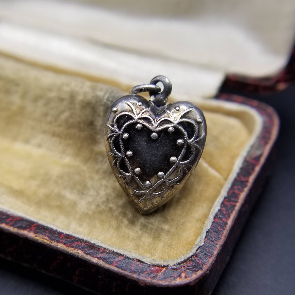 > WWII期 ヴィンテージ スウィートハートジュエリー レースのような装飾 チャーム 925 シルバー ペンダントヘッド 銀 レトロ Y25-E