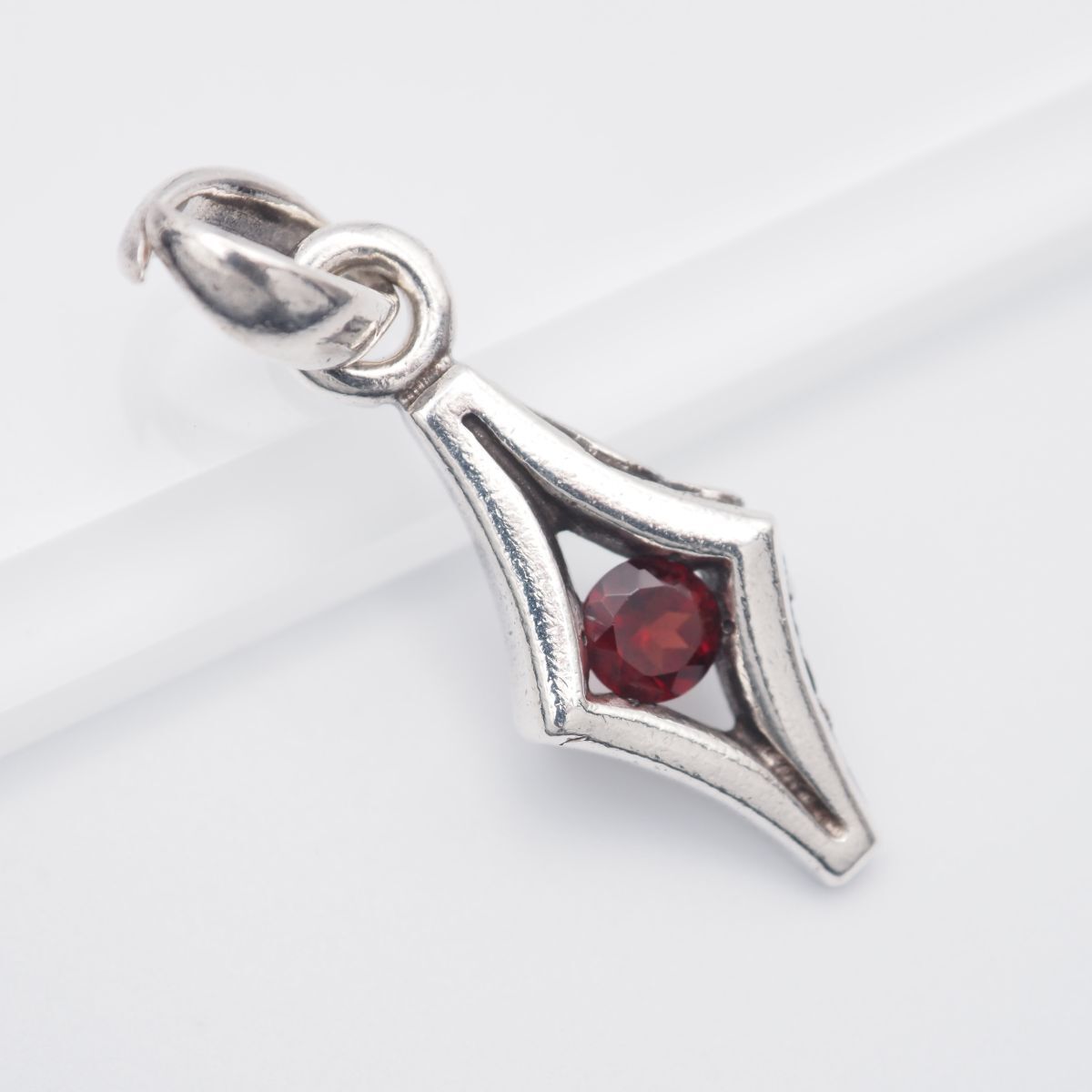 - H548 ガーネット ペンダント トップ デザイン シルバー チャーム ヘッド ヴィンテージ 1月誕生石