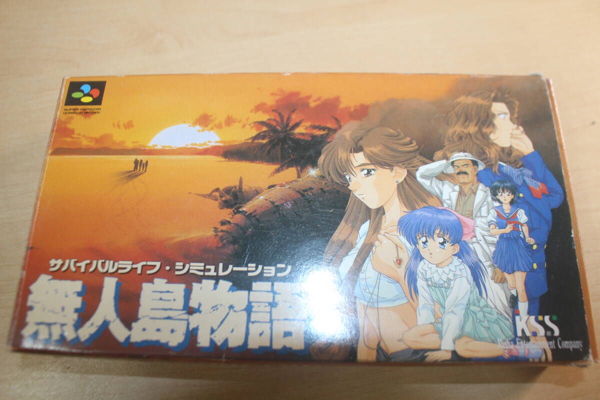 - 10054 起動確認済 「無人島物語」 スーパーファミコンソフト 箱付き 取扱説明書付き スーファミ SFCゲームソフト 現状品