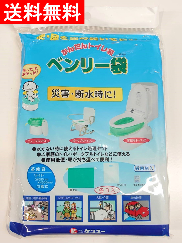 - 送料無料 簡易トイレ 3枚入 水不使用 非常用トイレ 携帯トイレ ベンリー袋 3回分 災害 断水 防災用品 ケンユー