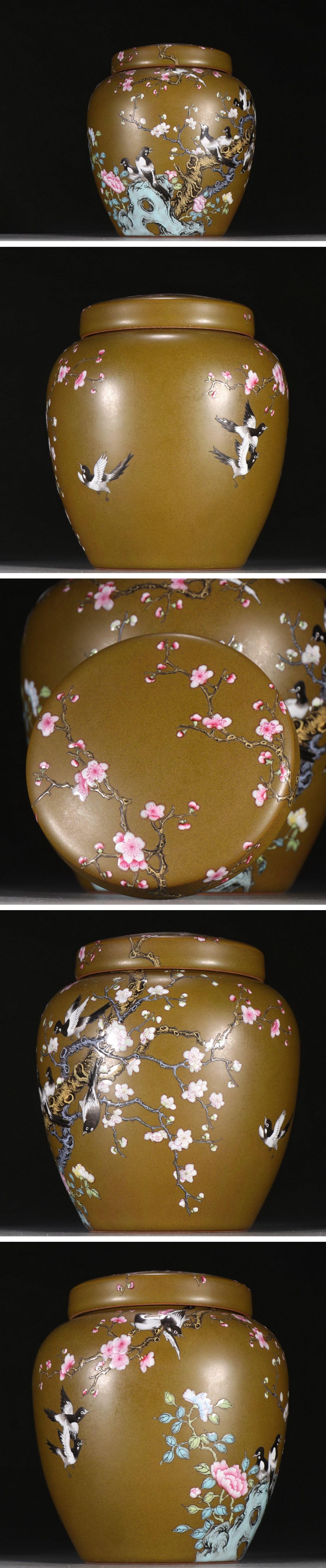> 【清】某有名オークション購入 清時代 雍正年製 琺瑯彩花鳥文茶葉入 茶壷 古置物 古擺件 古美術 時代コレクション7L10-ZS8