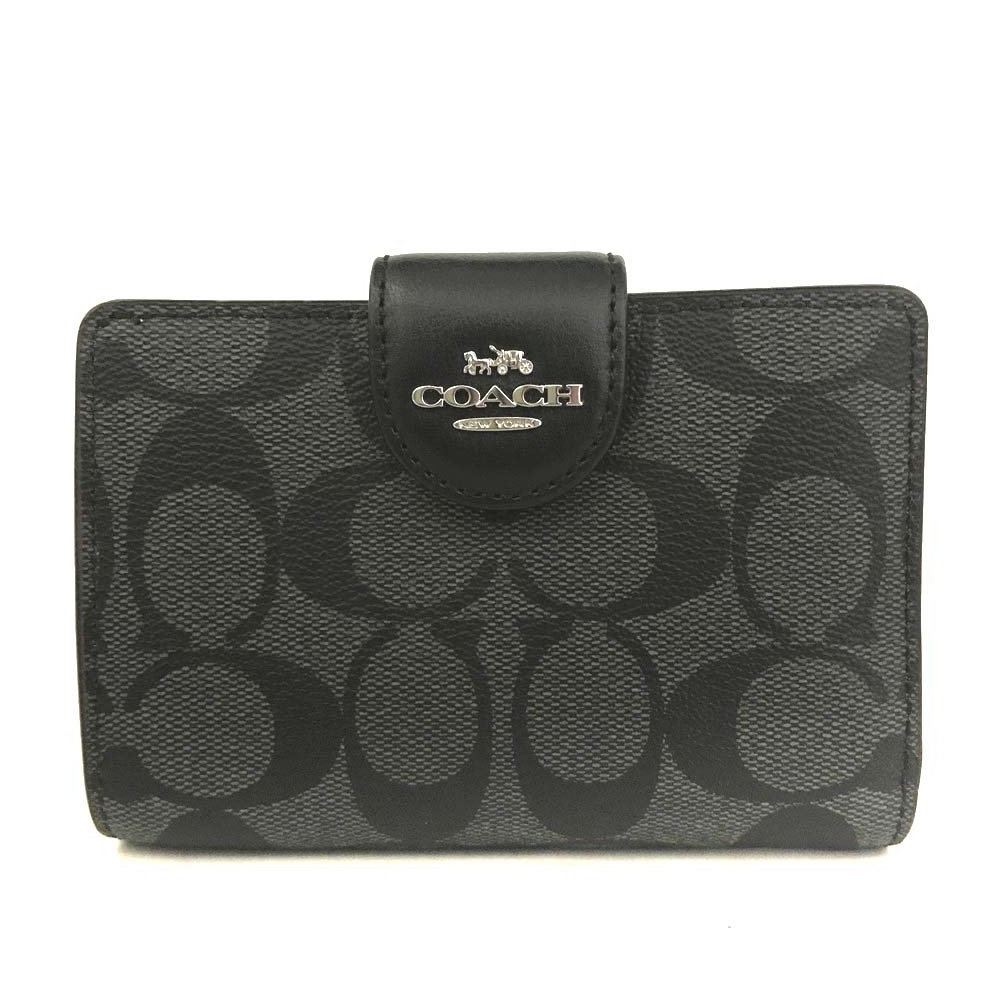 - 1円 極美品 COACH コーチ シグネチャー PVCレザー 二つ折り財布 ブラック /JP0302