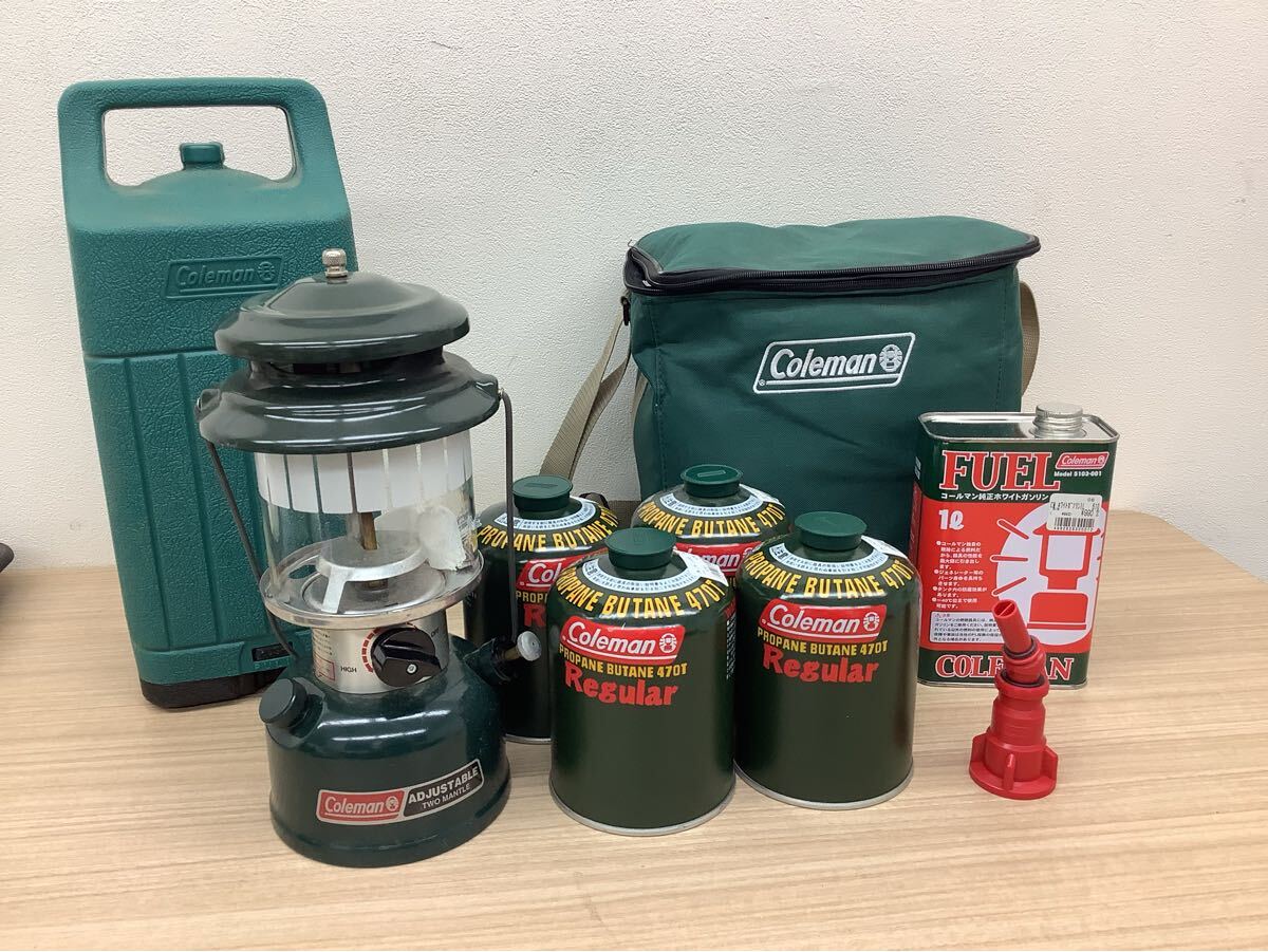 > ◯営KU168-さT直【埼玉発】直接引取限定 Coleman コールマン ツーマントルランタン ADJUSTABLE TWO MANTLE ケース 燃料缶 ガス缶付 現状品