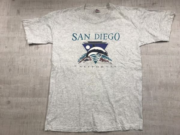 - USA製 サンディエゴ SAN DIEGO スーベニア お土産 サーフ アメカジ オールド 90s 古着 半袖Tシャツ カットソー メンズ L 杢グレー