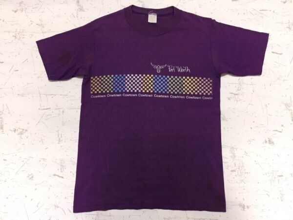 > ベルバシーン Velva Sheen FORT WORTH スーベニア イエロータグ ビンテージ 70s 80s シングルステッチ 半袖Tシャツ メンズ 紫