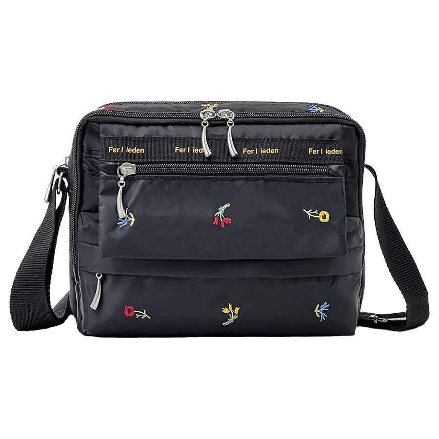 Ferlieden(フェアリーデン)刺繍ショルダーバッグ商品番号:4915,4792刺繍がかわいい、たくさんのポケットが付いたショルダーバッグです。小ぶりなので、電車や移動時にも邪魔になりません。それなのに収納力抜群です!ボンディング仕様でとっても軽量です♪正面フラップにファスナーポケット、フラップ下にファスナーポケット2つ、メインポケットは2層構造、背面にもファスナーポケットを完備☆