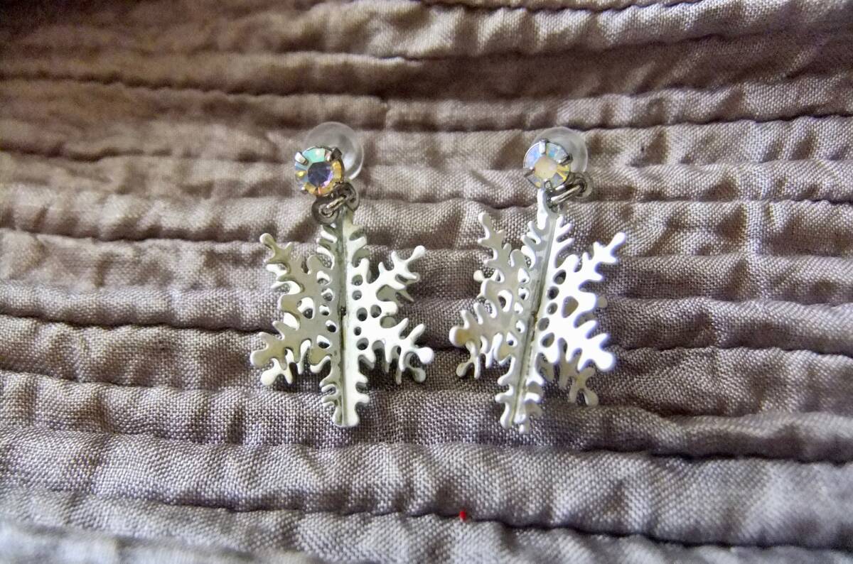 - オーロラカラーストーン、立体的な雪の結晶ピアス 2-21