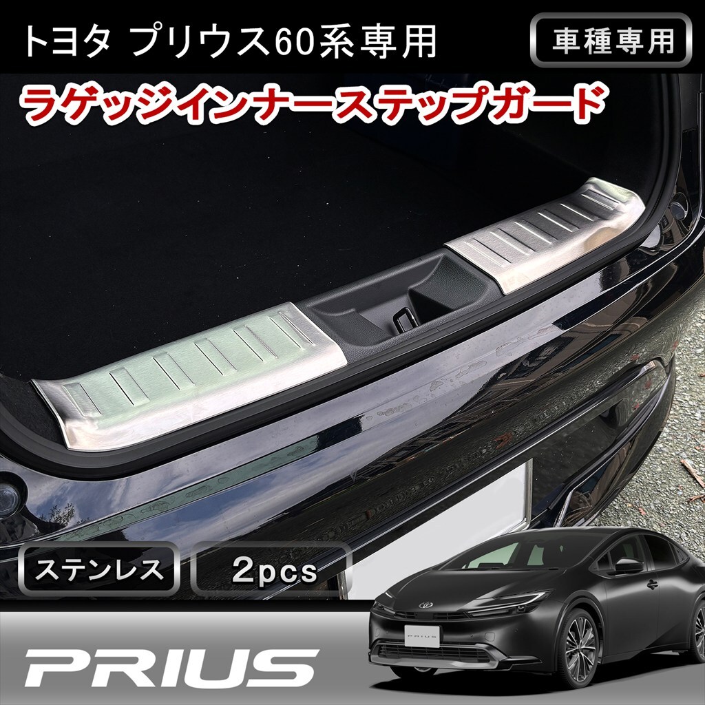 > 【プリウス 60系 専用】ラゲッジ インナーステップガード シルバーヘアーライン仕上げ メッキ 2Pセット トランク