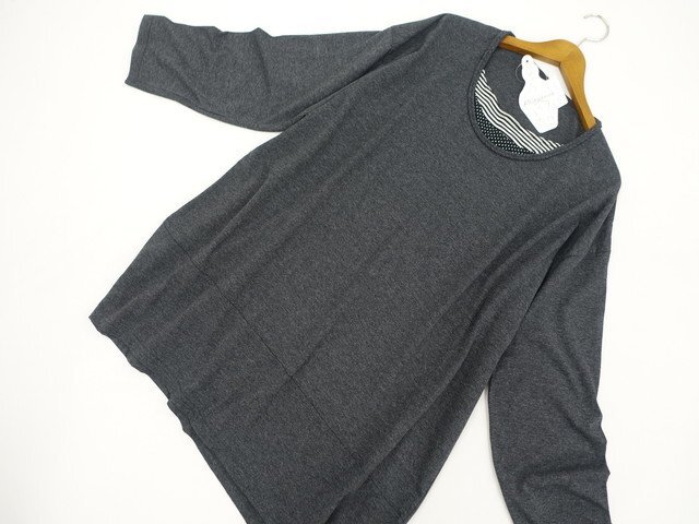 - 大きいサイズ 新品タグ付 ARlesienne 長袖 ラウンドネック フェイクレイヤードチュニック 4L グレー杢 ブラック ホワイト 水玉&ボーダー柄