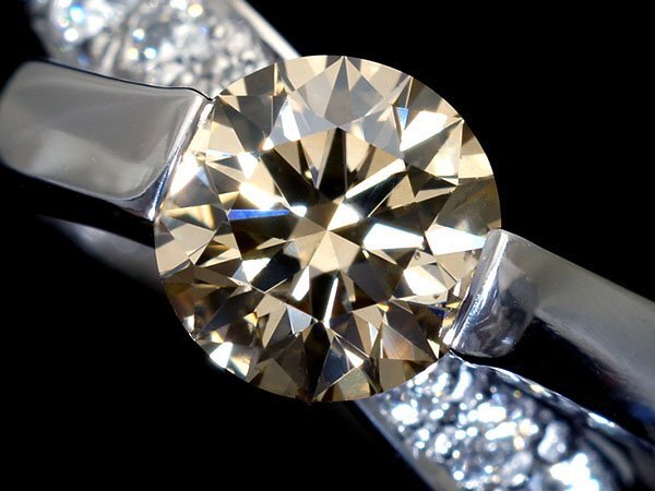 > 1円~【ジュエリー極】鑑 特大極上1粒天然ブラウンダイヤモンド1.272ct(SI-2)&脇ダイヤ0.37ct 超高級Pt900リング k980iim【送料無料】