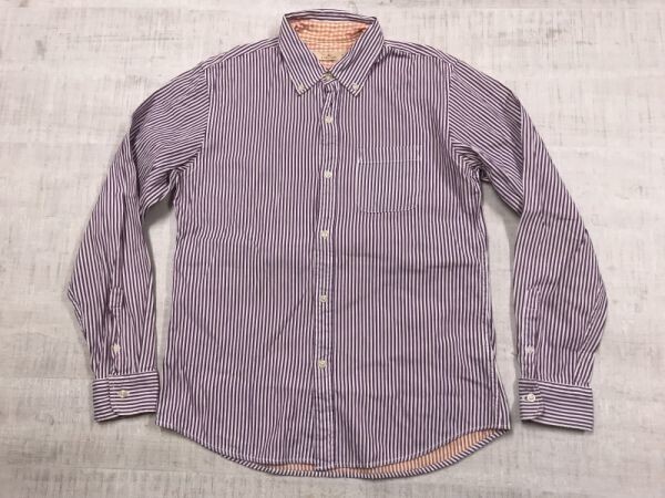 > グローバルワーク GLOBAL WORK オーセンティック ボタンダウン 二重織り ロンドンストライプ ロンスト 長袖シャツ メンズ M 紫