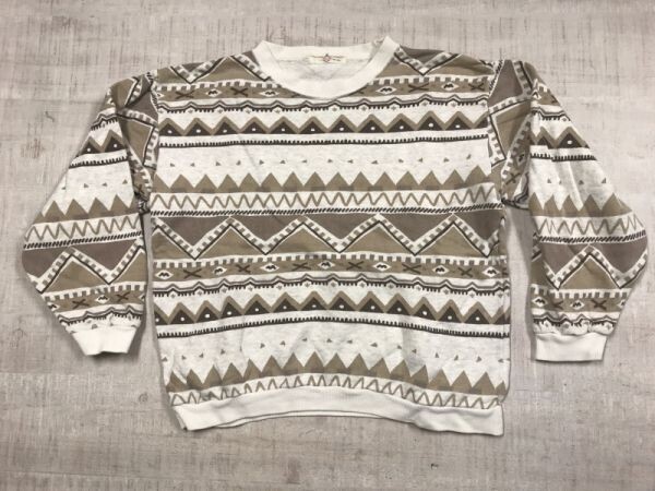 - NEM オールド 昭和レトロ アメカジ エスニック民族 ネイティブ ボーダー プリント スウェット トレーナー キッズ140 ライトグレー