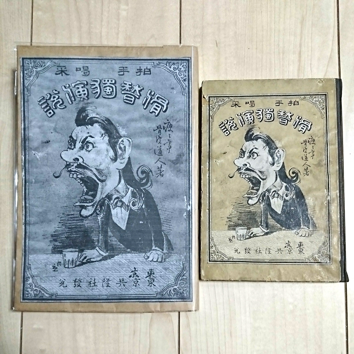 - ■『拍手喝采滑稽獨演説』痩々亭骨皮道人演説・和良井鋤太筆記。明治20年東京共隆社發兌版の完璧精緻寫本。★墨蹟は小野道風も吃驚!。