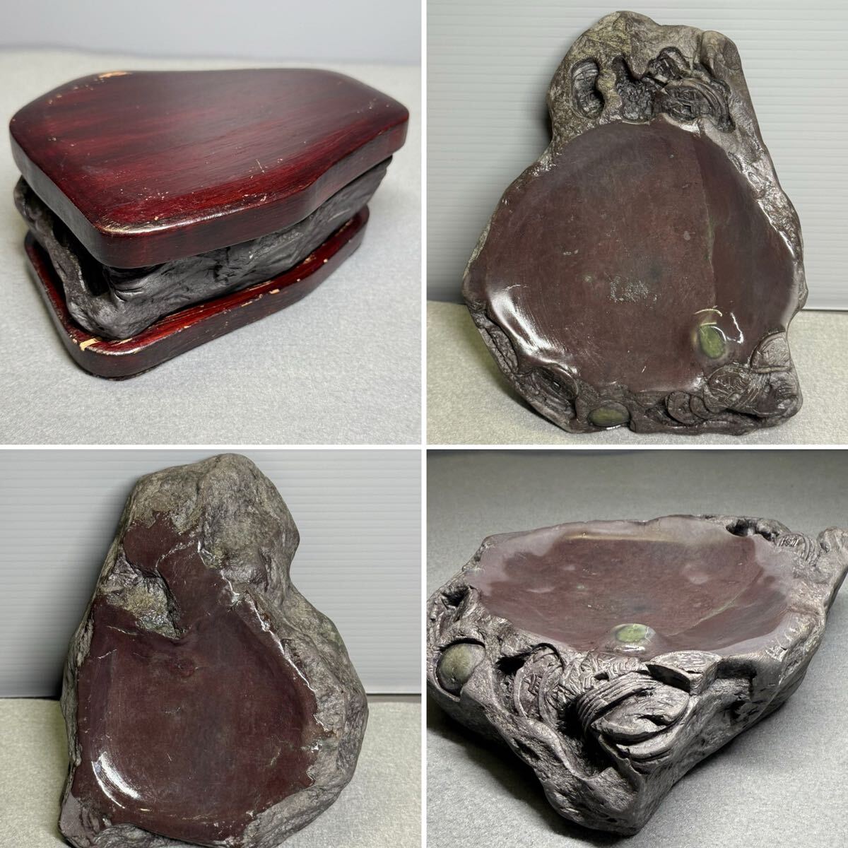 - 老坑端渓硯 中国美術 書道具 時代物 硯 古硯 老坑 石眼 古銭 銭 約1400g