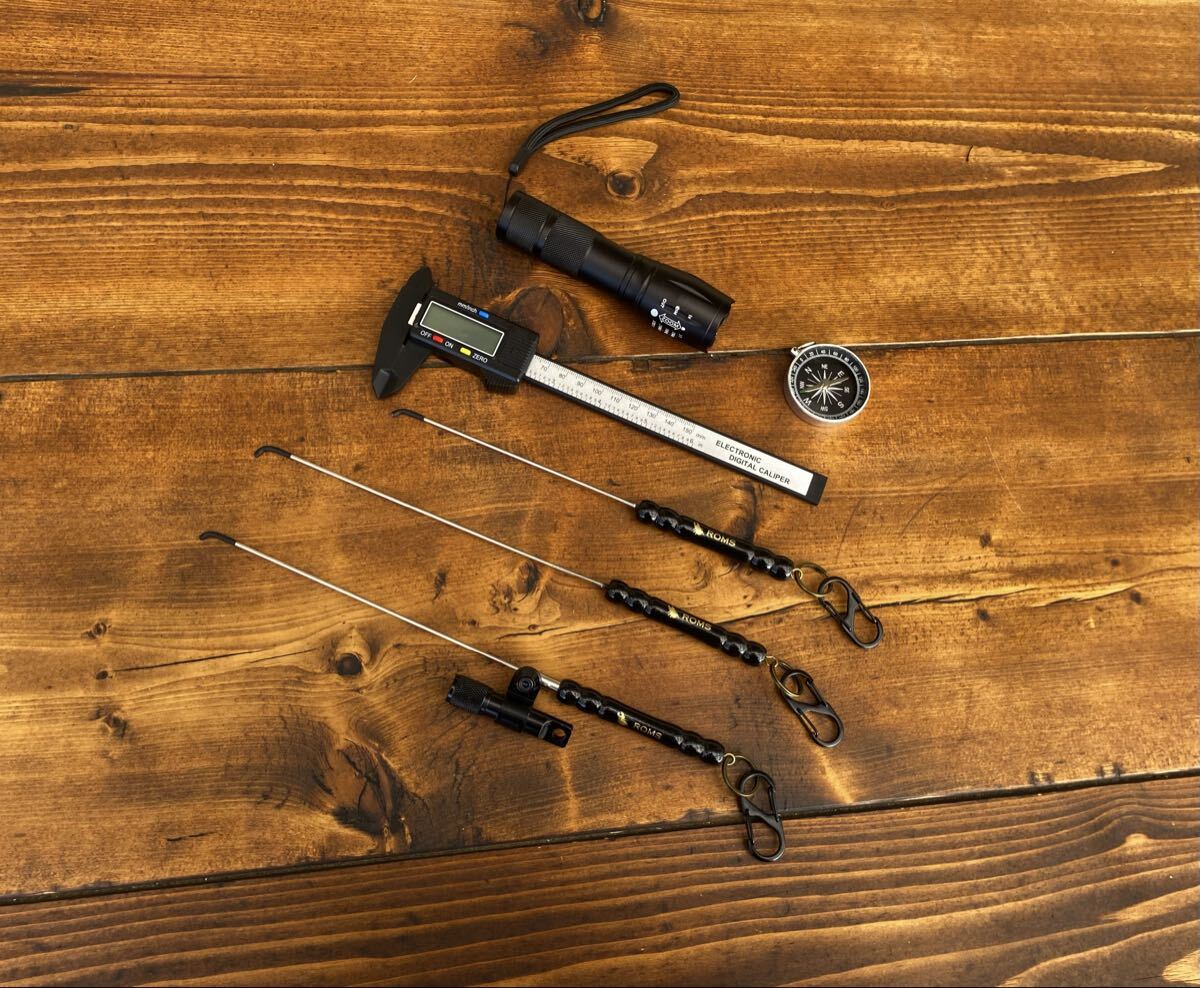 > クワガタかき出し棒 懐中電灯 オリジナルロゴ入り ライト付き掻き出し棒 方位磁石 コンパス ハンドメイド クワガタ採集 懐中電灯