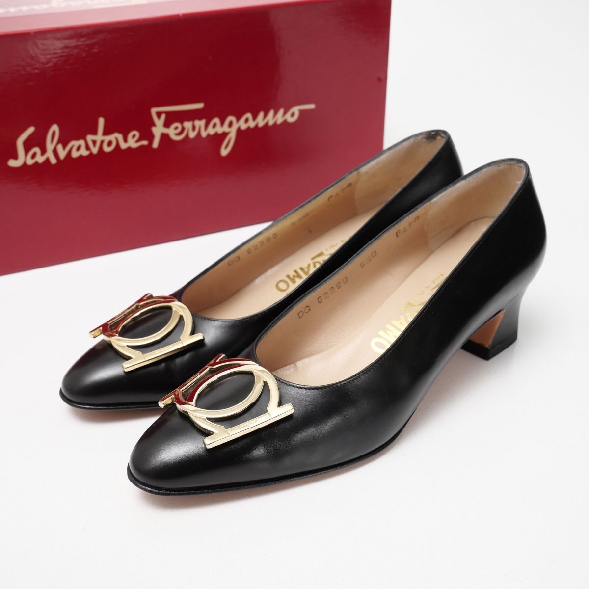 - GS3653△イタリア製 サルヴァトーレフェラガモ ガンチーニ レザーパンプス ブラック/ゴールド 5.5B/22.0cm相当 箱付き