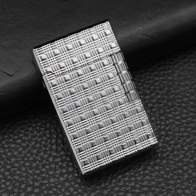 - 両面 チェックパターン ガスライター シルバー 快音 フリント サイドローラー