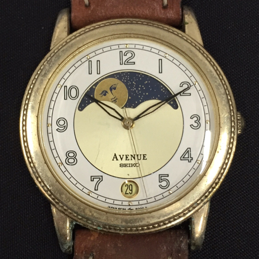 > セイコー アベニュー ムーンフェイズ デイト 腕時計 6F34-6000 メンズ 未稼働品 社外ベルト ファッション小物 SEIKO