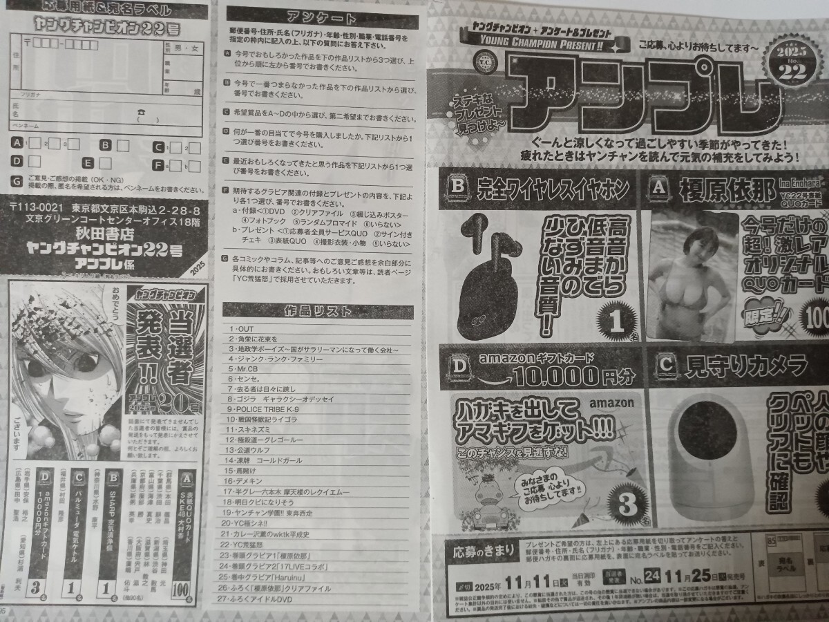 - 榎原依那 クオカード応募用紙 ヤングチャンピオン no.22