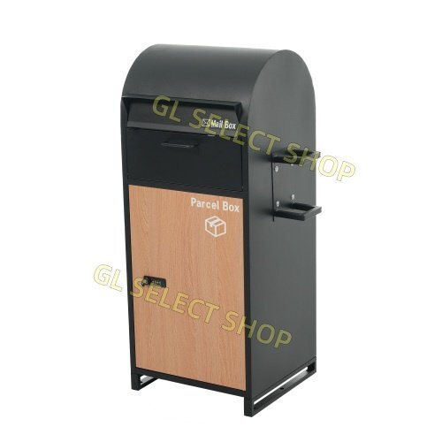 - ポスト 置き型 ほぼ完成品 傘立て付き ポスト付き 宅配ボックス付き おしゃれ 郵便受け 置き配 シンプル 玄関【ブラック+木目】