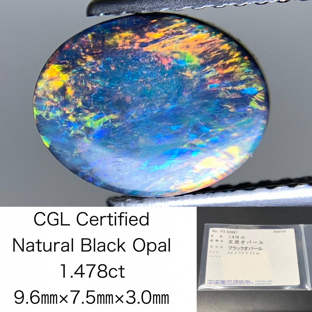 > ブラックオパール 天然 1.478ct 中央宝石ソーティング付き 9.6×7.5×3.0 ルース( 裸石 ) 7111Y