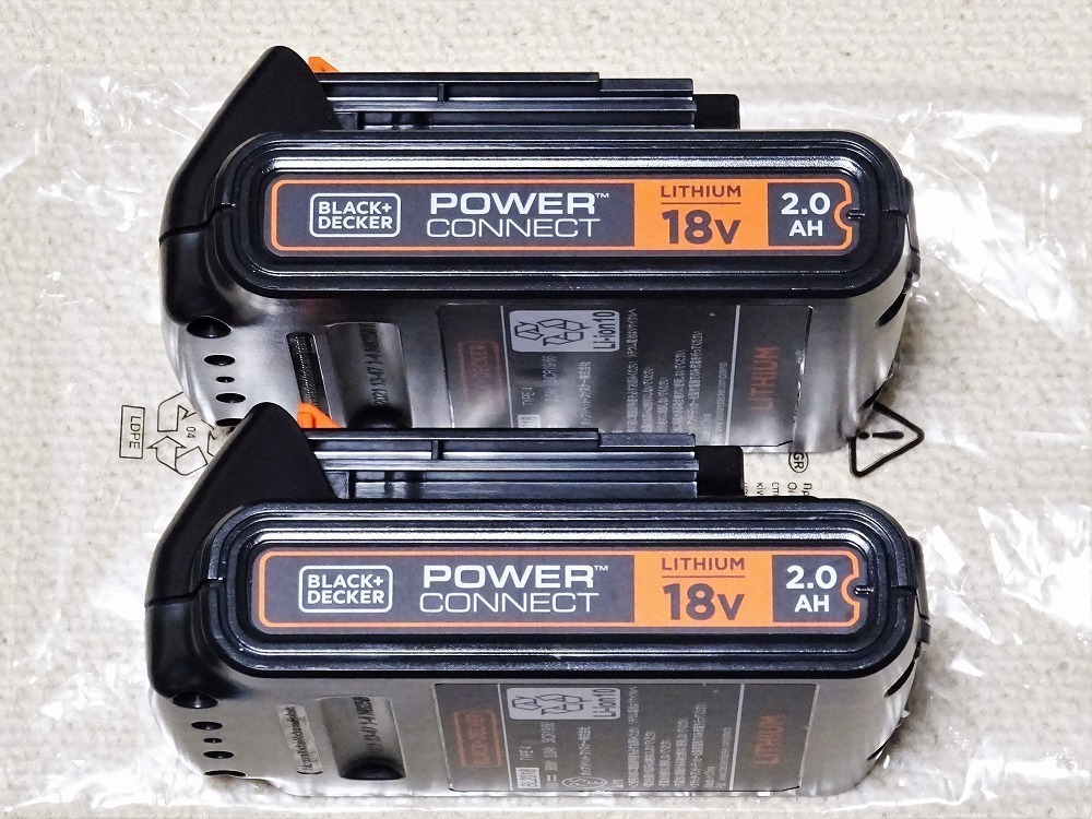 - ブラックアンドデッカー 18V2.0AH リチウムイオンバッテリー/電池 BL2018 2個セット (BLACK+DECKER EVO185 EVO183 B1 P1 E1 GEVO183N)