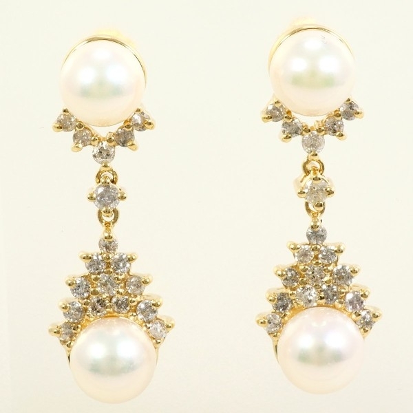 14K YG ピアス アコヤ真珠 ダイヤ カード鑑別書 総重量約5.9g 中古 美品 送料無料☆0315拍卖