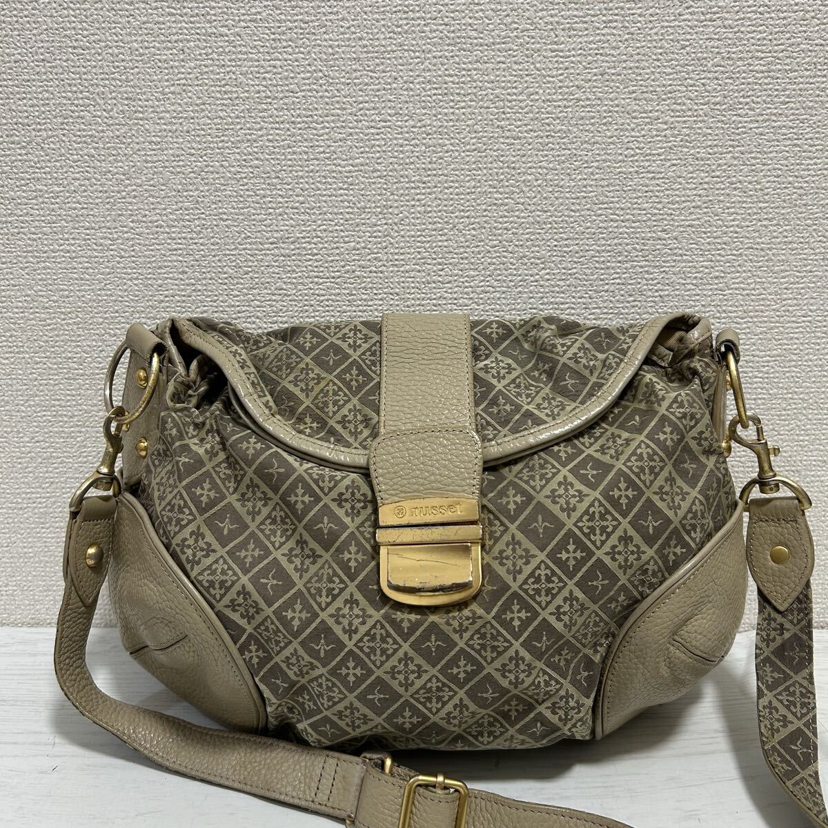 - russet ラシット レディース 斜め掛け ショルダーバッグ クロスボディバッグ ナイロン 本革 レザー グレー ゴールド金具 総柄 ブランド