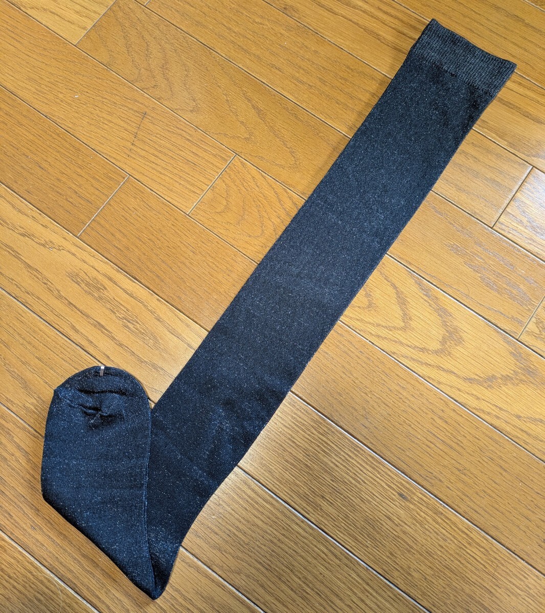 - 【レッグウェア】レディース・オーバーニーソックス・58cm丈・ラメ入り・ナイロン・超伸縮・やや薄手・平編み/口ゴムリブ編み・黒ソックス