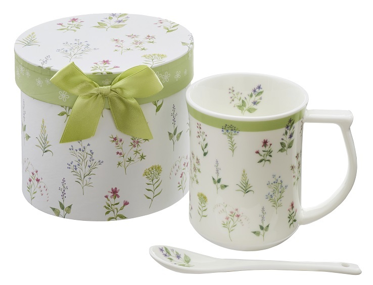 - やさしい草花のマグカップ・ギフトボックス入り・スプーン付き