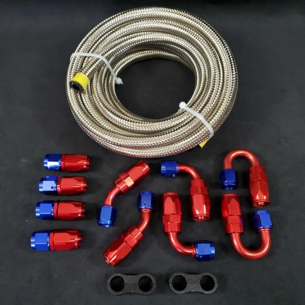 - オイルクーラー ステンメッシュホースセット AN6 5m フィッティング 10個 赤青 ステンレス 燃料パイプ オイルホース 接手ホース