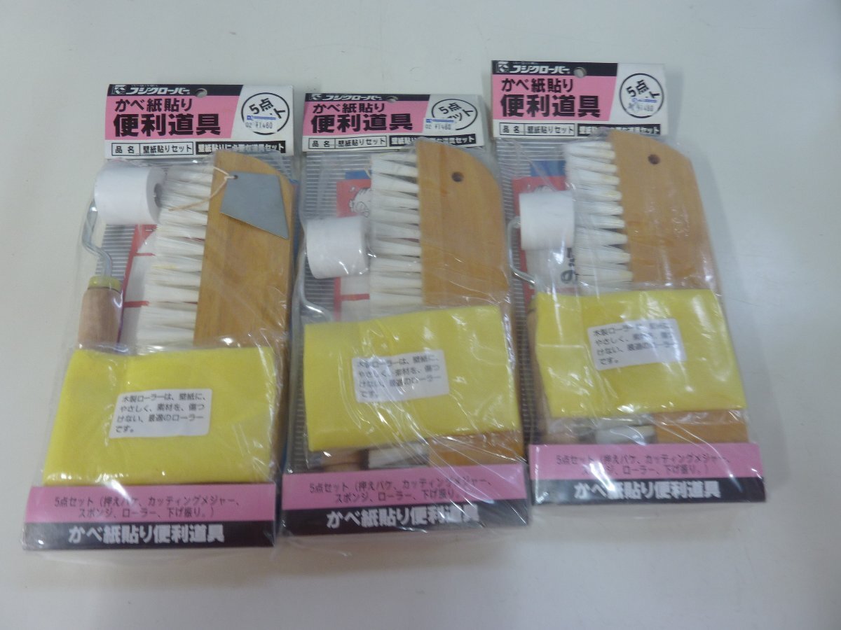 - mic.7 かべの張替え 便利道具5点セット3個 押えバケ・カッティングメジャー・バール・スポンジ これでお任せ のり刷毛おまけ