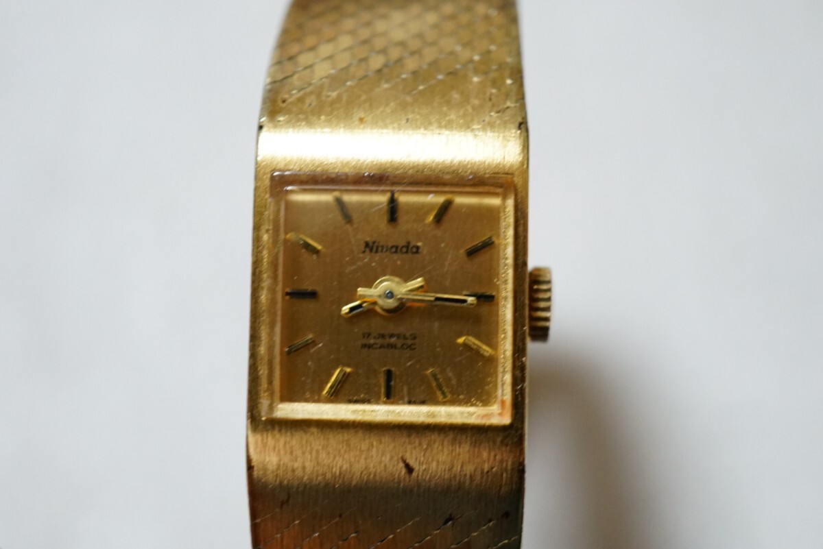 - F2058 稼動品 Nivada/ニバダ 手巻き ゴールドカラー レディース 腕時計 アクセサリー ヴィンテージ スイス ブランド 装飾品 訳あり 汚れ