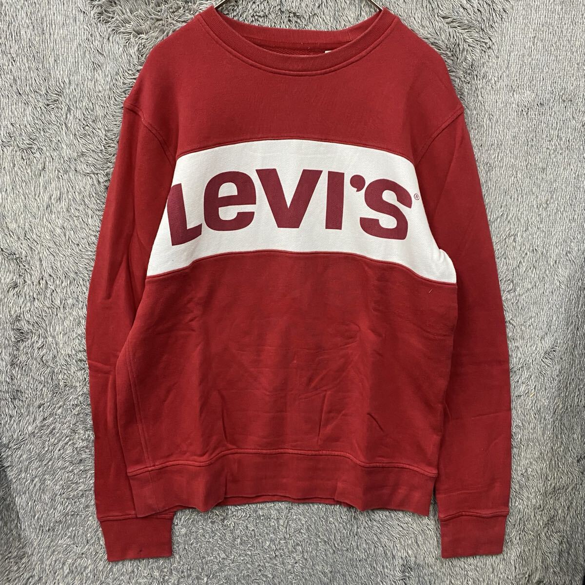 > Levi's リーバイス スウェット トレーナー サイズM レッド 赤 デカロゴ 配色切替 コットン メンズ トップス 最落なし(842)