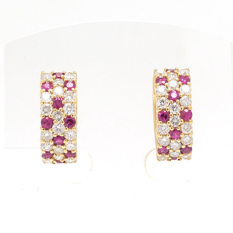 - ルビーダイヤモンドピアス K18YG・ルビー各0.35ct・ダイヤ0.55ct フープピアス
