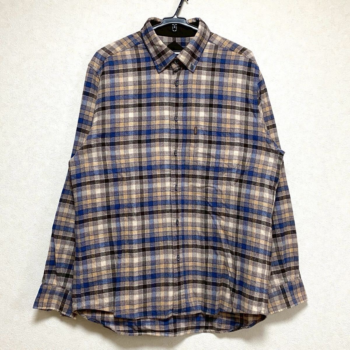 > 【美品】GoldenBear ゴールデンベア メンズ 長袖 チェックシャツ 綿100 ネルシャツ XL LL ブラウン ブルー 秋冬 人気 トップス カジュアル