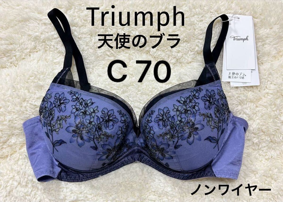 - C70 トリンプ 天使のブラ ブラジャー 魔法のハリ感 パープルネイビー ノンワイヤー
