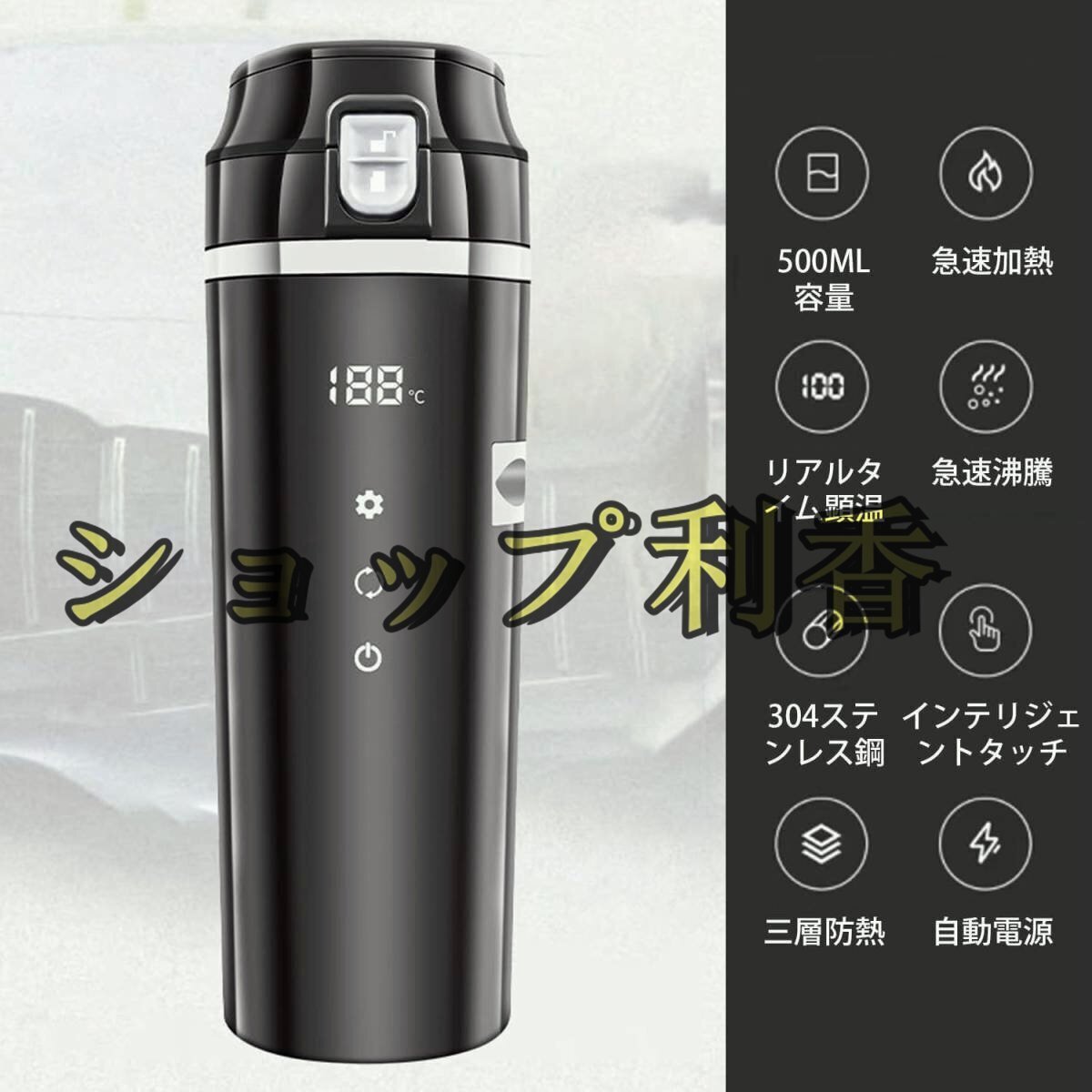 - 車載電気ケトル DC12V/24V 500ml大容量 自動車 トラック 沸騰恒温お茶粉ミルク 湯沸し器 電気ポット 車中泊 304ステンレス鋼 真空断熱