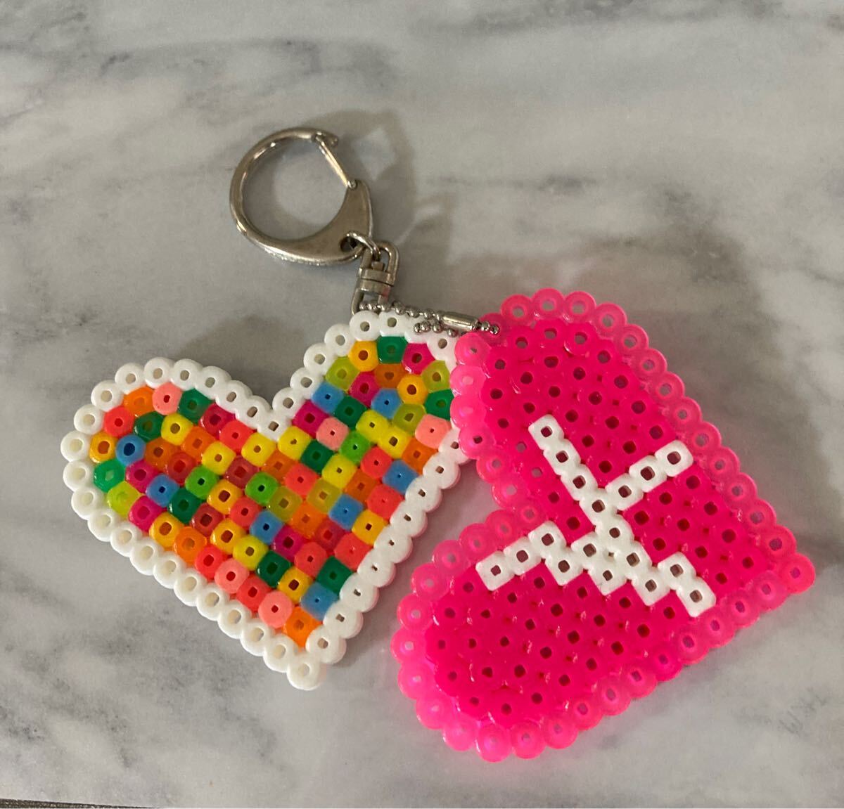 - 【手作り】アクアビーズ☆キーホルダー☆「K」&ハート