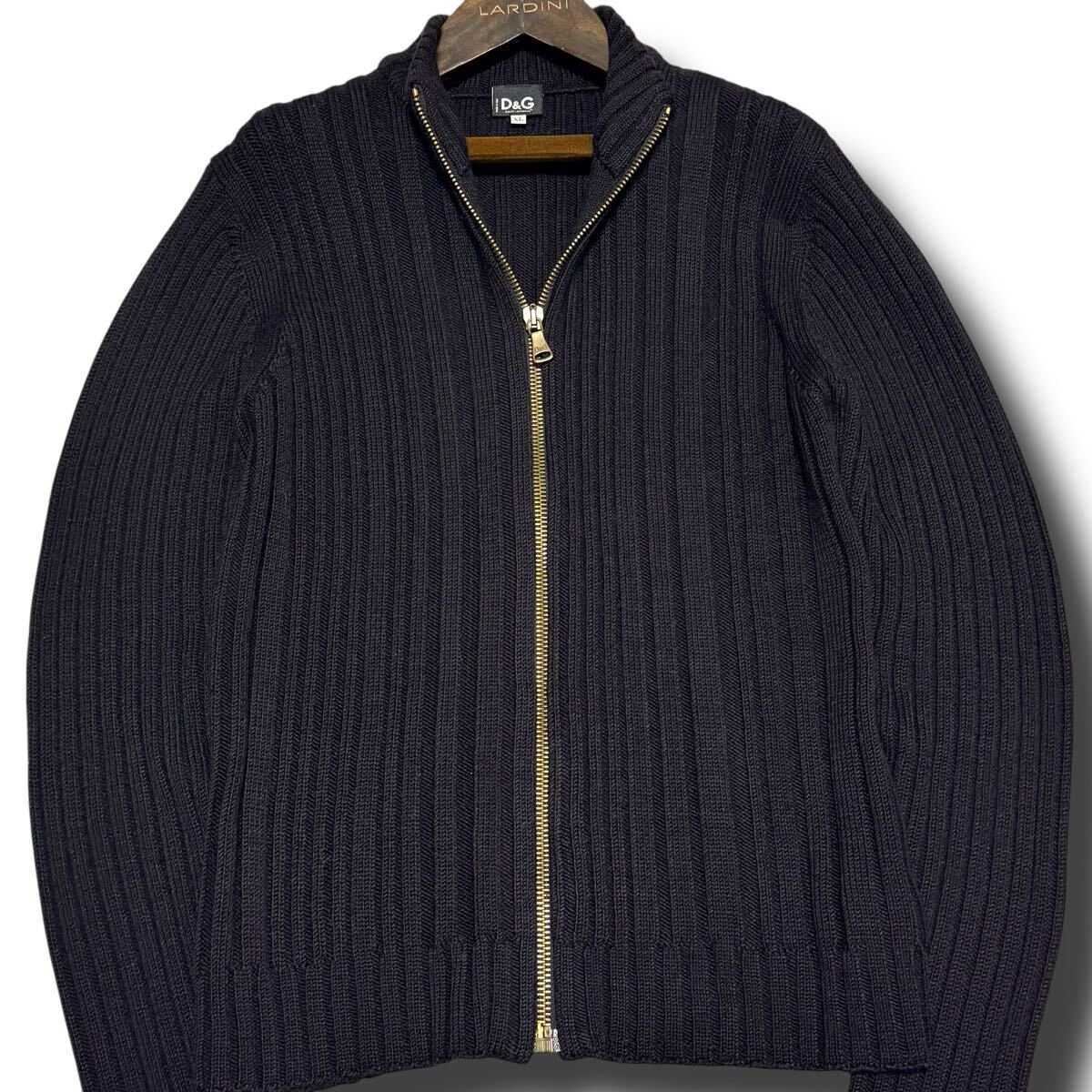 - DOLCE&GABBANA【極美品◎ 肉厚ローゲージ!!!】ドルチェ&ガッバーナ ドライバーズニット ジャケット XLサイズ ハラコロゴプレート ブラック