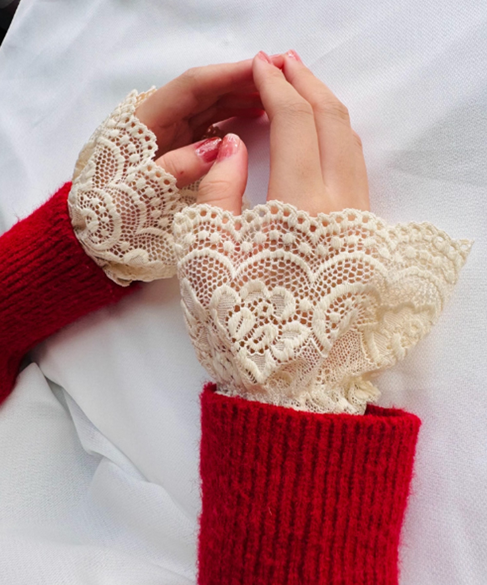 - レース 付けカフス レディース 重ね着風 ハンドカバー ベージュ