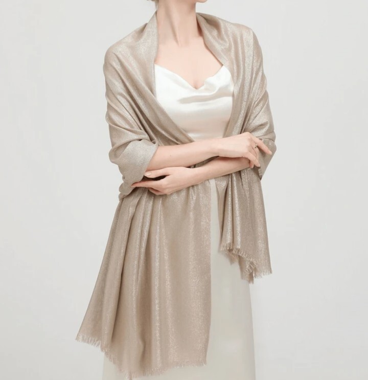 - 結婚式パーティーフォーマルドレスショール☆大判ストール華やかラメゴールドベージュ