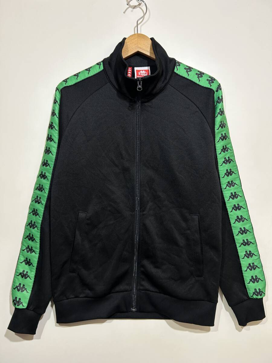 > ★ Kappa トラックジャケット ジャージ 黒 ブラック S グリーンライン 袖ライン 緑 ストリート ユニセックス OMINIロゴ BANDA