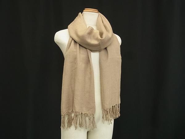 - 1円 ■美品■ CHANEL シャネル カシミヤ×シルク フリンジ マフラー ストール ショール 防寒具 レディース ベージュ系 FI8698