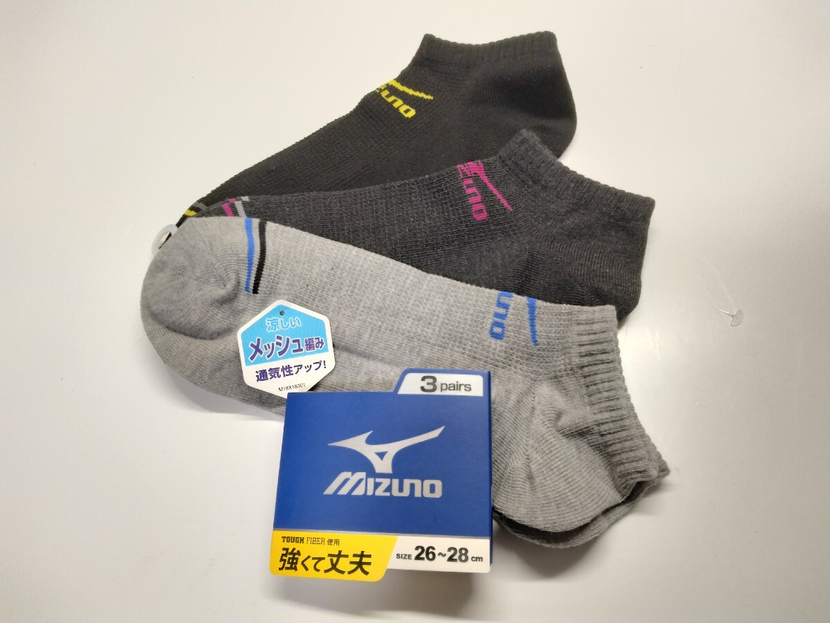 - 送料無料!★ミズノ ショートソックス3足組★新品★26cm~28cm★強くて丈夫★メッシュ編み(涼しい)★通気性アップ★02