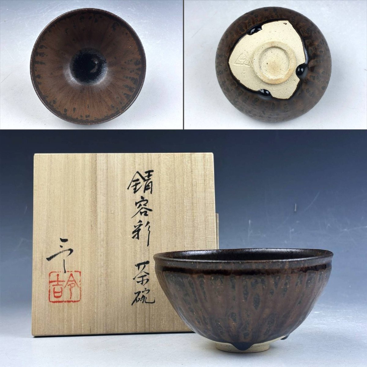- 瀬戸焼 背戸窯 加藤令吉 錆容彩 天目形 御茶碗 抹茶碗 無傷 共箱 茶器 茶道具 和食器 時代物 古陶磁器 古美術骨董品 CNT102【遅日亭】